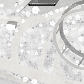 시설물의 배치는 두 교각의 위치로 자연스럽게 결정된다. 정면으로 나무-한강-청담대교-강 건너의 건물이 보이고 배면에는 강변북로가 지나간다. 숲 사이로 난 75m 길이의 경사로를 오르면 두 교각을 연결하는 길이 40m, 폭 1m의 좁은 통로가 나온다. 북적이는 한강공원에서 긴 경사로를 따라 오르며 차분해진 마음으로 공간을 마주한다. 한옥의 툇마루와 기본 형태가 같은 이 공간은 반복되는 기둥열을 기준으로 단차가 있어 걸터앉을 수 있다. 높고 좁은 천창과 화단이 놓인 개구부를 통해 빛과 바람이 유입된다. 바닥의 금속 그레이팅에는 자갈을 채워 빗소리와 걷는 소리가 더해진다. 공간의 끝에 다다르면 원형 계단을 통해 다시 공원으로 내려간다.